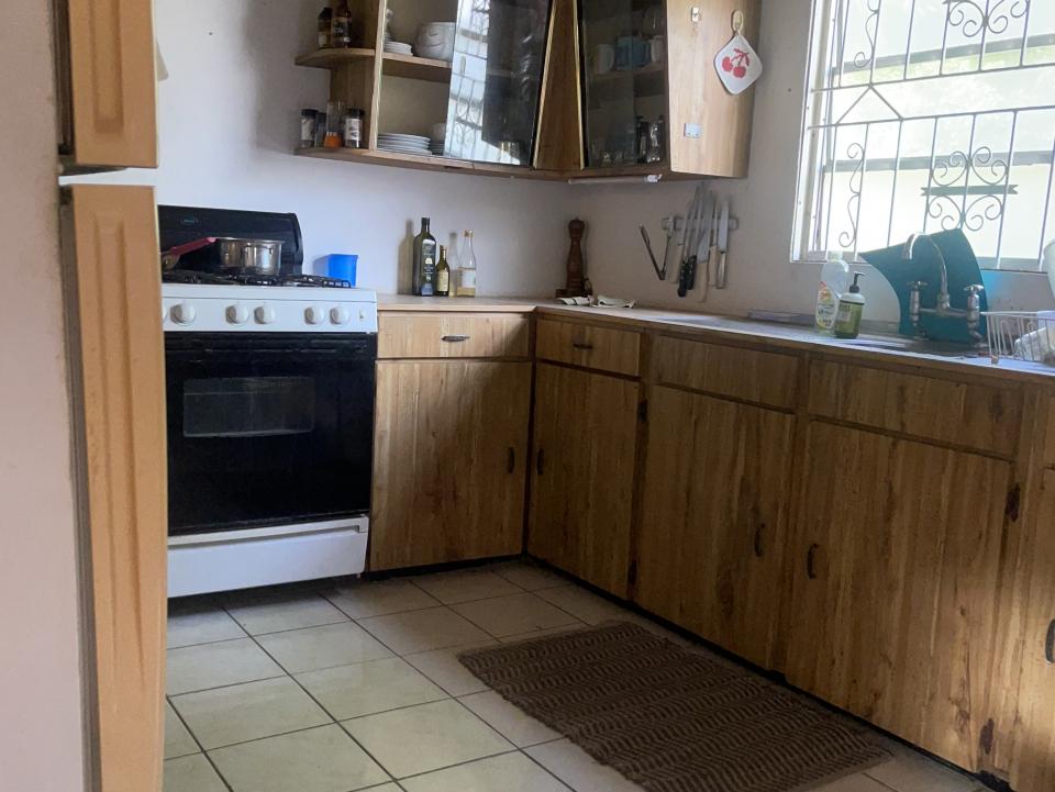 Apartment 2 is upstairs and is accessed via a covered outdoor concrete staircase with safety railings leading to the front door. A pon entering you will notice the high ceilings and small front patio, which in turn leads straight into the living room flowing into the kitchen diner. The back door in the kitchen leads downstairs to the mature garden. The two bedrooms both have built in closets with one having a private patio with spectacular views overlooking St Phillip.